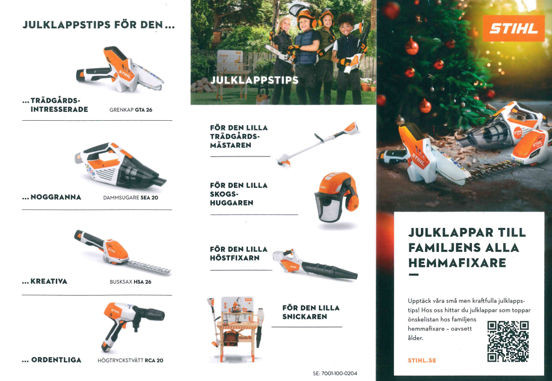 STIHLs AS-serie passar perfekt för den som tycker om att sköta sin trädgård, med allt från eldrivna sekatörer till lövblåsare. Det är dessutom extra roligt att STHIL har släppt en massa roliga leksaker, så hela familjen kan vara delaktig. Fram till den 24 december erbjuder vi riktigt bra priser för dig som vill ge en uppskattade julklapp, oavsett ålder!